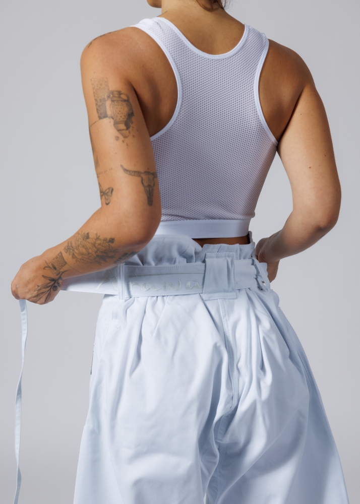 Der von Arawaza® patentierte Bund mit innovativem Bindesystem stützt Ihren unteren Rücken und hält die Hose an ihrem Platz, sodass nach wiederholten Bewegungen während der Darbietung praktisch keine weitere Anpassung erforderlich ist.