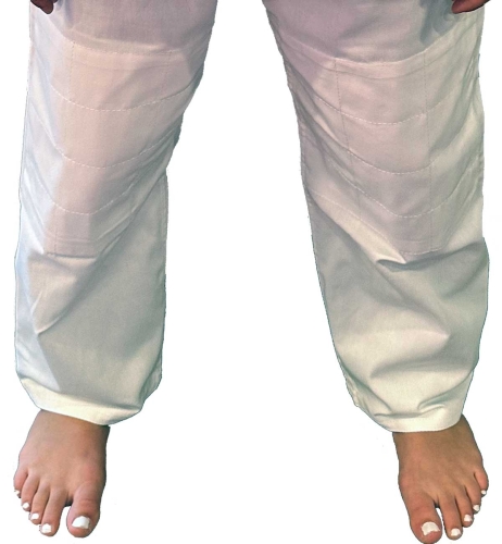 Die Hose verfügt über eingenähte, gepolsterte Knie mit zusätzlichen Kreuznähten für bessere Haltbarkeit. Weisser Gürtel im Lieferumfang enthalten.