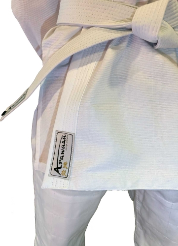 Dieser preisgünstige Judoanzug ist wie alle Produkte von Arawaza mit zahlreichen Details und Verstärkungen ausgestattet. Diese Eigenschaften verleihen jedem Judo-Anfänger ein gepflegtes und elegantes Aussehen. 100 % Baumwolle, einlagig gewebt Klebeband an der Taillennaht für zusätzlichen Komfort. Verstärkt an Rücken, Schultern, Brust und Achseln. Hose mit elastischem Bund und Schnürung, um unseren jungen Anfängern (Grössenn 100 bis 150) das Anziehen zu erleichtern.