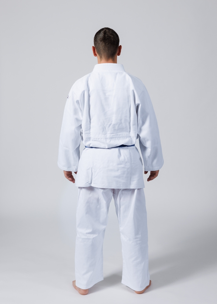 Judo-Anzug ARAWAZA Middleweight, bestens geeignet für den Einsteiger sowie den Fortgeschrittenen Judoka, weiss gebleicht in strapazierfähiger, mittlere Qualität, 450g 100% Baumwolle, Hose mit Elastikbund und zusätzlicher Innenschnürung, mit weissem Gürtel